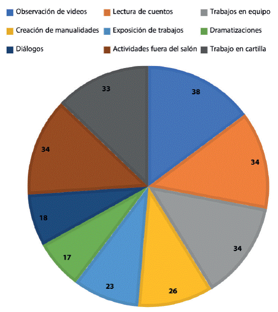La pregunta siete, asociada con las actividades preferidas se expone en la Figura 4, y fueron tomadas como estrategias claves para la elaboración de la ruta metodológica del modelo.