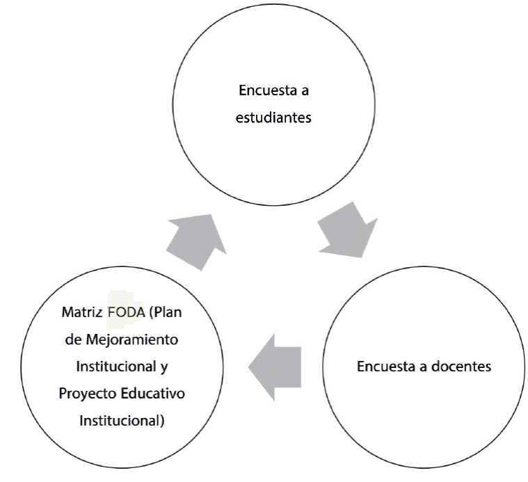 Análisis: aplicación de encuestas a estudiantes del grado tercero y docentes, y elaboración de matriz FODA (fortalezas, oportunidades, debilidades y amenazas) sobre los resultados de las encuestas y revisión documental del PEI y del PMI, identificando las necesidades a tratar mediante el modelo didáctico.