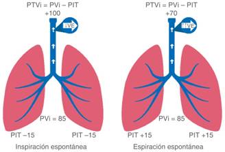Durante la ventilación mecánica invasiva el flujo de aire que se entrega al paciente determina una presión o volumen establecido al momento de programar el ventilador. Esto produce un aumento de la presión intratorácica que es mayor durante la inspiración, disminuyendo hasta la presión en reposo durante la espiración, la cual es pasiva. Lo anterior determina que durante las fases de la respiración la presión intratorácica sea mayor que la atmosférica. Esta presión positiva se transmite a todas las estructuras intratorácicas, lo que produce efectos en la presión intratorácica, aumentándola sobre las estructuras vasculares. A esto debemos sumar la presión positiva al final de la espiración, que eleva la presión intratorácica en ambas fases de la ventilación en la misma cuantía.1,3