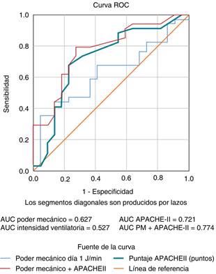 El resultado de nuestro estudio llama la atención porque en la literatura médica el poder mecánico mayor a 13 J/min ha sido asociado con mayor mortalidad; sin embargo, nuestro resultado es mayor a 15 J/min, lo cual podría ser un resultado interesante pudiendo ser un poco más liberales en el manejo del poder mecánico, y además cabe mencionar que se incluyeron en el análisis multivariado las anormalidades bioquímicas y el cálculo de la escala de APACHE II al ingreso como potenciales distractores; aun así el poder mecánico mayor a 15 J/min continúo asociándose como un predictor de mayor mortalidad.
