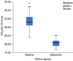 | VO2máx a las 12 horas | Motivo de egreso mejoría n (%) |