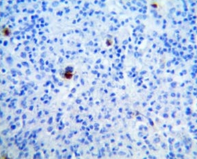 Figura 2 CD30 positivo membranal y en aparato de Golgi de células neoplásicas. Inmunohistoquímica 40×.