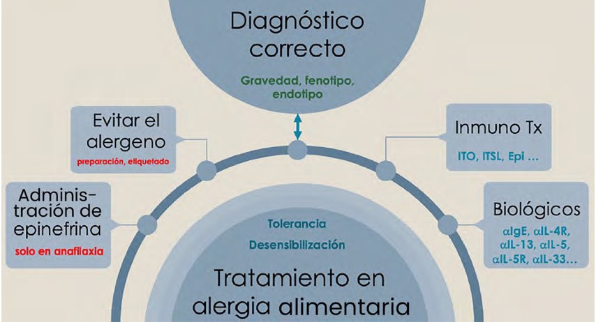 Key words: Food allergy; Treatment; Allergen elimination; Family education; Epinephrine; Antihistamines; Psychological support; Immunotherapy; Tolerance; Bioterapeutic agents