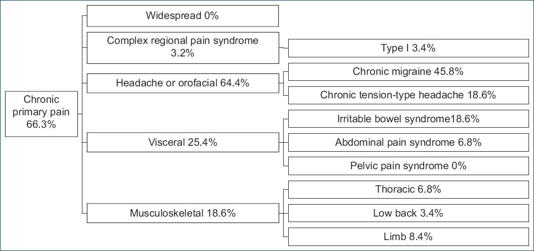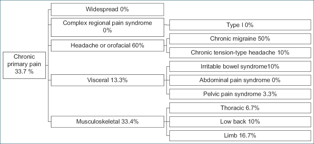 The prevalence of pain in pediatric patients is 86%; up to 80.9% of hospitalised children suffer pain in the first 24 hours. Regarding chronic pain, a 2011 systematic review provided estimates of prevalence for headache (8% to 83%), abdominal pain (4% to 53%), and back pain (14% to 24%), all of which are now part of the classification of chronic primary pain11-15. The purpose of the ICD is to facilitate epidemiological reports, while being familiar with the prevalence of primary chronic primary pain in pediatric patients with chronic pain will enable us to view this type of pain as a pathology present in this age group.