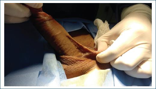 In the reported case, a proximal and distal approach was performed, a procedure similar to performing a saphenectomy, with the aim of performing a minimally invasive surgery that does not compromise the patient's sexual functioning and performance due to complications such as pain in erection and fibrosis of the penis. In 2009, Salmon et al.13 proposed a non-invasive technique to solve Mondor's disease, manual axial distraction, which provides patients with a fast, effective solution without adverse effects; it consists of applying firm pressure with distraction to several points of the thrombosed vein until the tension is overcome.