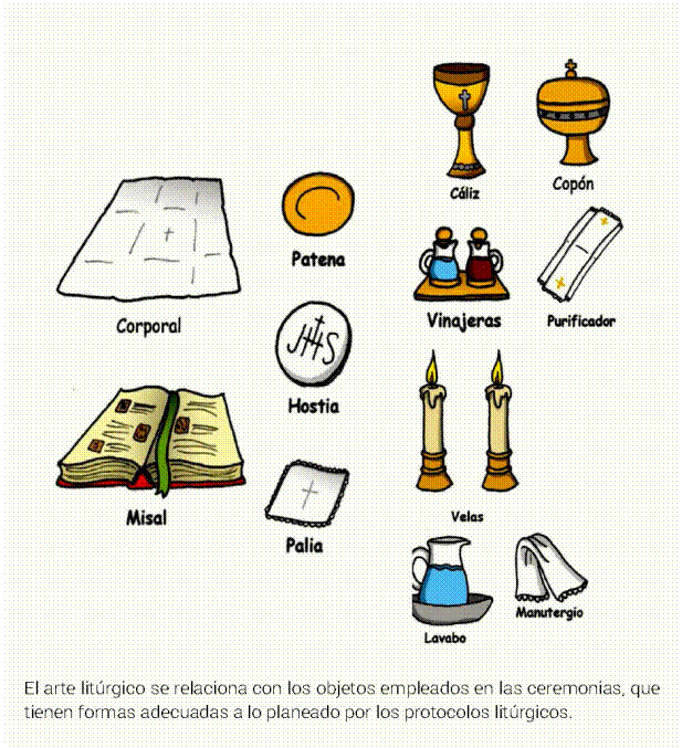 El arte litúrgico se relaciona con los objetos empleados en las ceremonias litúrgicas que tienen formas adecuadas a lo planteado por los protocolos litúrgicos, como los presentados en la Figura 13.