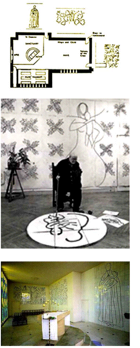 Figura 15 Arte Sacro. Fotografías del interior de la Capilla del Rosario, diseñada por Henry Matisse en Saint-Paul-de-Vence, Francia, en 1951. Fotografía Capilla del Rosario en Vence, fruto de una amistad, en: arquitecturaycristianismo.com; los espacios del arte en: entretantomagazine.com, y expresividad vital a través de la luz.