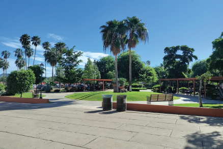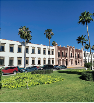 Si la región puede condicionar el universo simbólico inmediato del sonorense en general, éste no puede menos que representarlo constantemente en sus constructos e instituciones: un jardín que se impone como emblema ante el acceso del edificio pretendidamente más importante del conjunto.