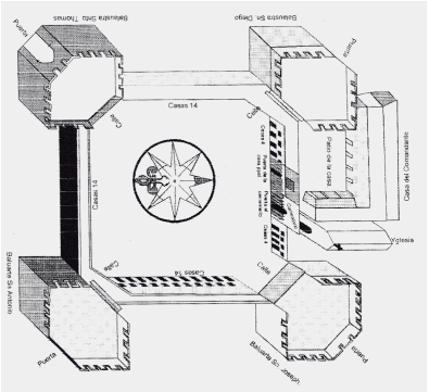 Figura 12 Axonometría del Real Presidio de San Miguel de Horcasitas, Sonora, S. XVIII.