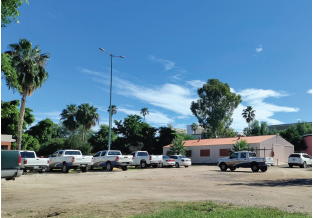 Figura 15 Área de estacionamiento (antes jardín de naranjos) contiguo al edificio del Departamento de Arquitectura y Diseño, Centro de las Artes, Unison (2022).