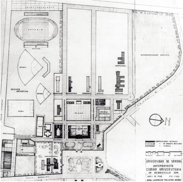 Figura 3 Leopoldo Palafox. Anteproyecto de Ciudad Universitaria, Unison, 1958.