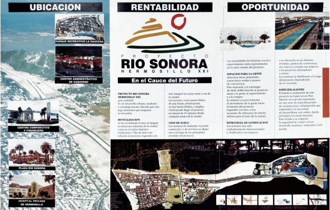 Figura 5 Fideicomiso Río Sonora. Plegable publicitario del Proyecto Río Sonora Hermosillo XXI. Diseño urbano: ELIAS+ELIAS, RTKL International,Ltd., 1994.