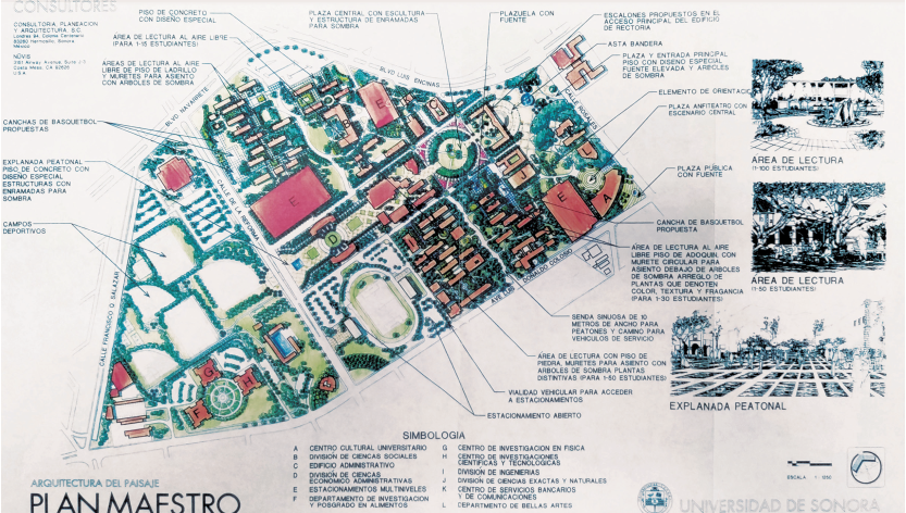 Figura 6 Unison. Plan Maestro de Espacios Físicos y Renovación del Campus, Arquitectura de paisaje, 1994. NUVIS-Bob Cardoza Landscape.