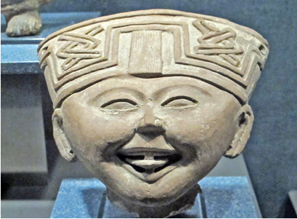 Figura 10 Carita Sonriente mostrando el peculiar tocado y el símbolo de ángulos entrecruzados.