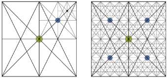 Finalmente, la retícula como una urdimbre abre la posibilidad de ordenar diseños complejos sin perder la capacidad de ubicar en ella la serie de puntos previamente localizados en la estructura original.