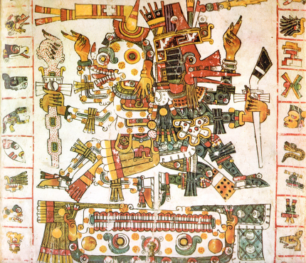 Figura 2 Mictlantecuhtli y Quetzalcóatl en el códice Borgia como representación de la dualidad. Fuente: códice Borgia, https://www.meisterdrucke.es/impresion-artística/Mixtec/269602/Copia-facsímilde-una-página-del-códice-Borgiaque-representa-a-los-dioses-dela-Muerte-y-la-Vida-colocadosuno-al-lado-del-otro.html.