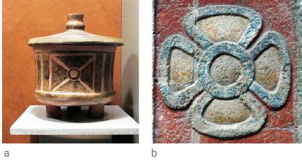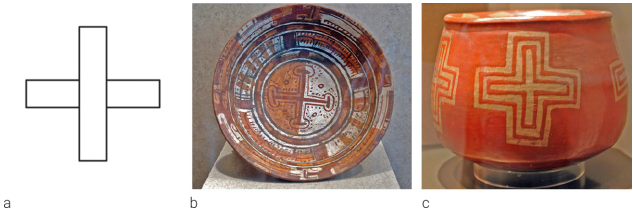 De manera semejante a lo acontecido con la cruz de diagonales, la cruz de ortogonales fue utilizada en diversos objetos utilitarios, rituales y ornamentales, desde el periodo Preclásico hasta el Postclásico, sin embargo su uso aparentemente fue menos extendido (Figura 7b).