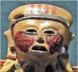 Una pieza de significativa importancia es una figurilla de barro localizada en el Museo Nacional de Antropología e Historia (MNAH), en la sala de las Culturas de la Costa del Golfo de México, que representa a una mujer con los brazos extendidos y que en su rostro muestra por separado ambas cruces (Figura 8).