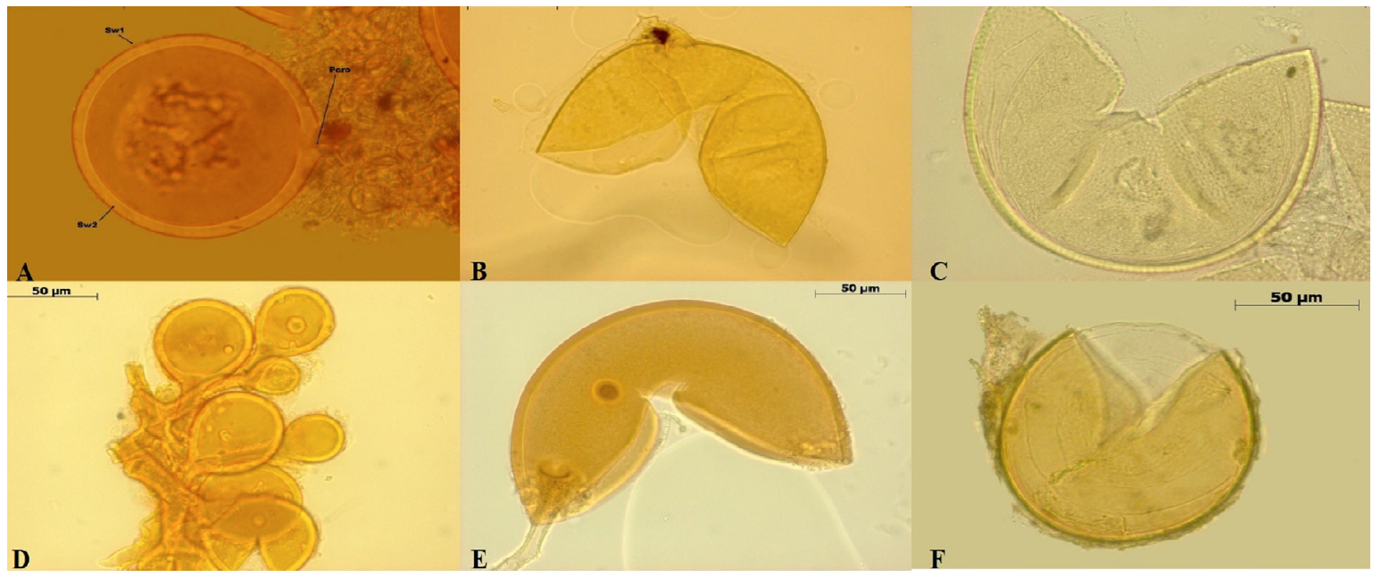 Para la identificación de los HMA, se montaron las esporas en láminas semipermanentes con alcohol polivinilico-lacto-glicerol “PVLG” (Morton et al., 1993) y reactivo de Melzer (Koske y Tessier, 1983). Las observaciones de las estructuras microscópicas de estas esporas se realizaron en el microscopio compuesto (Nikon Model Eclipse. Japón); en estas observaciones se tomaron en cuenta las características morfológicas básicas propuestas por Walker (1983) y Morton (1988). Con lo anterior se determinó: la forma, tamaño, características de la pared externa, estructuras de germinación, hifa de sostén y reacción al reactivo de Melzer de las esporas extraídas. Posterior a ello, se identificaron las especies con base en la colección internacional de cultivos de hongos micorrizógenos arbusculares y vesiculares (http://invam.caf.wvu.edu), el manual para la identificación de hongos micorrizícos vesículo-arbusculares (Schenck y Perez, 1990), las descripciones de especies depositadas en el Departamento de Patología de Plantas de la Universidad de Agricultura en Szczecin, Polonia (http://www.agro.ar.szczecin.pl/~-jblaszkowski/), así como las publicaciones originales de las especies. Se empleó como referencia la clasificación del Phyllum Glomeromycota propuesto por Redecker et al. (2013) y Wijayawardene et al. (2018). Los especímenes identificados fueron depositados en el Laboratorio de Fitopatología de Facultad de Agronomía y Veterinaria de la UASLP.