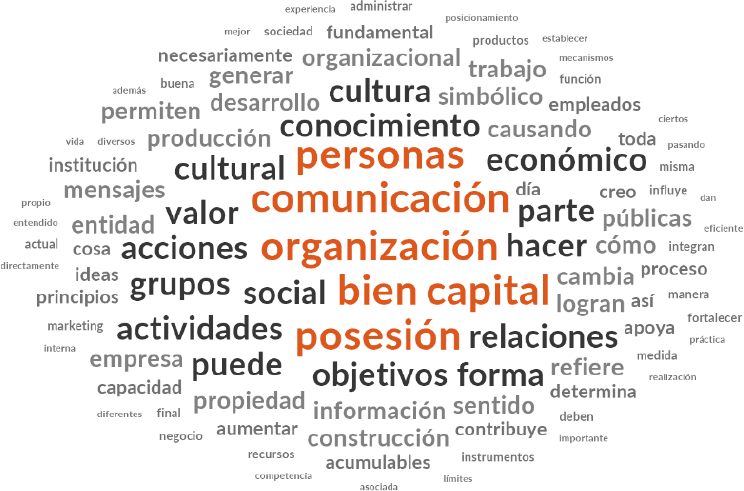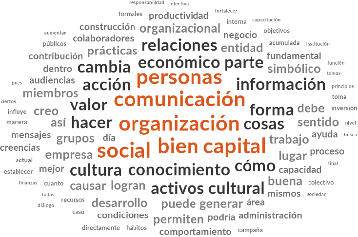 Figura 11 Nube de texto sobre capitales de académicos en comunicación organizacional