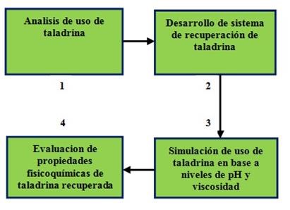 La figura 6 muestra las etapas desarrolladas en esta investigación, donde se observa en cada etapa (de la 1 a la 4). Lo novedoso de este estudio científico es determinar en base a el pH y viscosidad, que tanta taladrina se puede recuperar y aplicar el sistema de recuperación en procesos industriales de la industria metalmecánica de la ciudad de Mexicali. Las etapas de la investigación, fueron desarrolladas por separado para obtener la máxima funcionalidad de la taladrina y se explican a detalle en la sección de resultados.