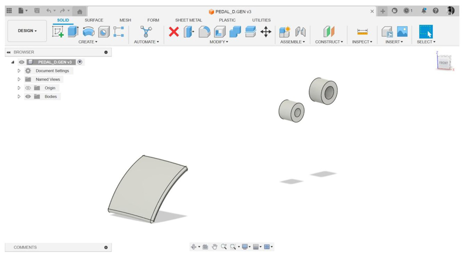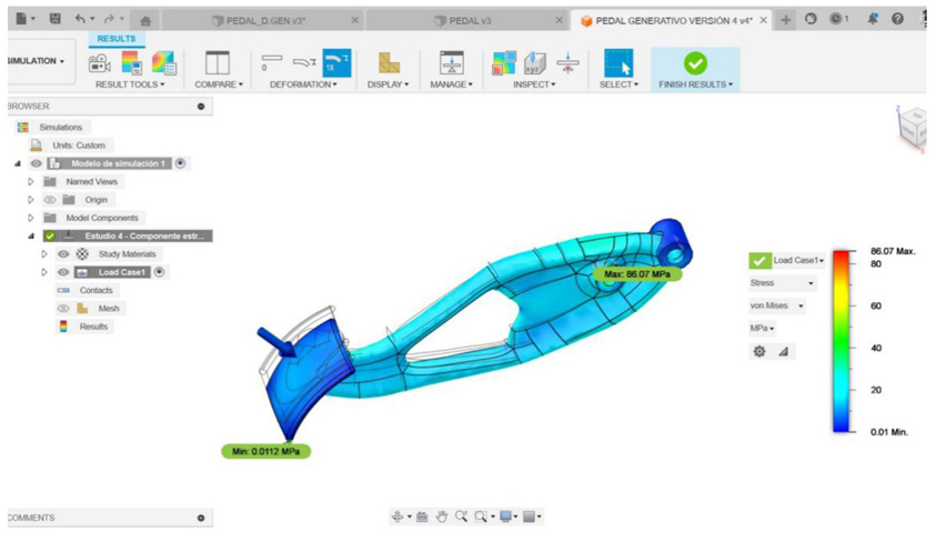 Por otra parte, L. Lira, mediante el uso de Autodesk Fusion 360®, muestra una serie de propuestas de pedales optimizados de diseño variable que presentan distintas características siento una constante la reducción de masa [23].