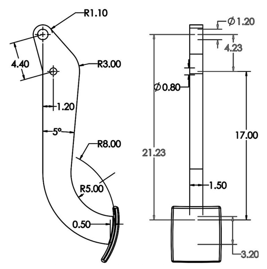 Las dimensiones y geometría del pedal base puede verse en la Figura 2.