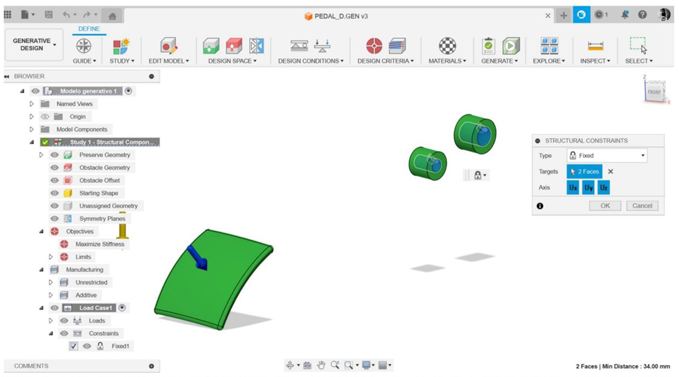 Los parámetros considerados para la aplicación del diseño generativo al pedal de frenado se muestran en la Tabla 1.