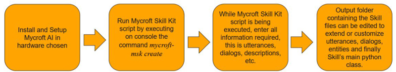Mycroft Skills Kit (MSK) utility is installed along with Mycroft with the objective to facilitate the creation, upload, and upgrade of skills in the corresponding local directories or repositories. mycroft-msk create is the console command used to run MSK and execute an interactive script to ask and answer information to generate a skill skeleton in the form of a template.