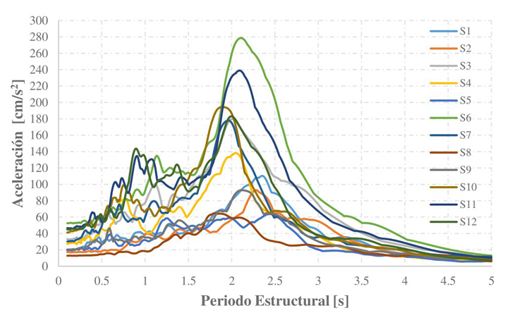 La normativa utilizada para la selección de los registros sísmicos se especifica en las normas técnicas complementarias para el diseño sísmico [28]. Para la selección de los registros se tomó en cuenta que fueran registros representativos del tipo de suelo donde se ubican los edificios, de manera que estos sismos caractericen de forma adecuada los efectos de la ubicación en las estructuras sujetas a movimientos telúricos.