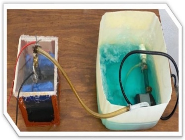 Equipo utilizado: En el desarrollo de esta investigación se utilizó una celda de acrílico con medidas de 15 cm x 15 cm x 15 cm, (dichas medidas fueron seleccionadas en base al volumen de muestra que se deseaba utilizar), 2 electrodos de grafito de 12.5 cm x 10 cm x 1.5 cm (los electrodos se obtuvieron del área de almacenamiento de electrodos desechados de acería), vaso de precipitado de 10 ml, 1 recipiente grande, probeta graduada de 100 ml, medidor portátil de pH marca HANNA, barras de silicón, abrazaderas, matraz aforado, tornillos de acero inoxidable, papeles filtro, embudos, mangueras, fuente de poder con un output de 0-30 V/0-10 A, bomba hidráulica sumergible de 18 W, balanza analítica, tubo de Venturi el cual fue elaborado con una manguera de – de pulgada, un adaptador de ½ de pulgada y un cople de – de pulgada.