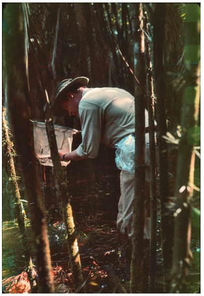 Figure 1 William E. Duellman collecting tadpoles at Lago Perdido. Santa Cecilia, Ecuador, April 1972.