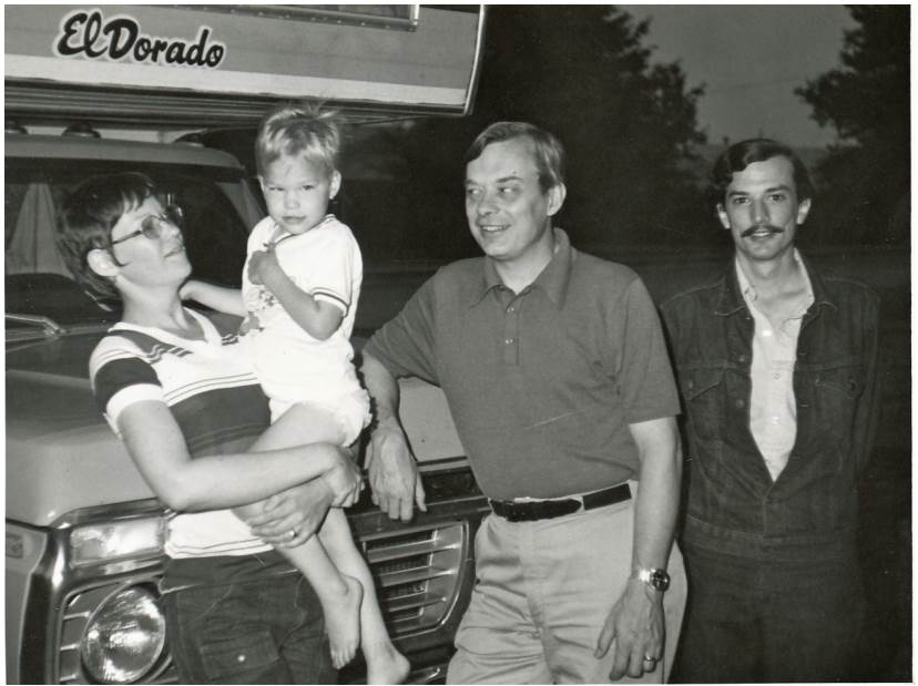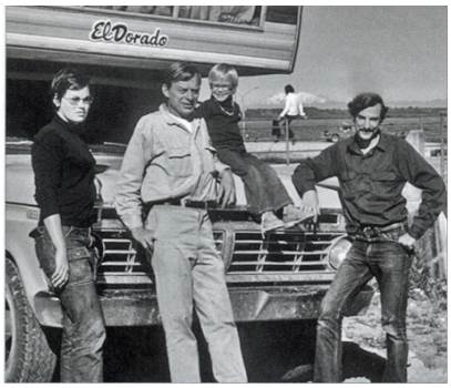 Figure 2 Linda Trueb, Dana Duellman, William E. Duellman, and John E. Simmons, at the start of their year-long trip through the Americas, May 1974.