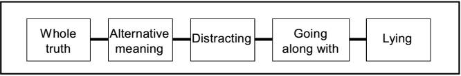 In a report on this issue, the Mental Health Foundation (8) came up with a continuum, as shown in Figure 1. The suggestion is that you should always start as close to truth telling as possible. If you have to deviate from this, you should do so only on good grounds and you should move down the continuum in steps, unless there are good reasons not to. For example, if it is already known there will be a catastrophic reaction, say, to «looking for an alternative meaning» (i.e., trying to understand the emotions that are being expressed), then it might be better to use «distracting» immediately. Even so, best practice is that staff should keep care plans for decisions which involve any form of deception.