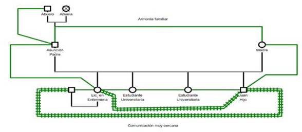Figura 4 Genograma de familia nuclear, modelo funcional con valores, límites, armonía y comunicación afectiva