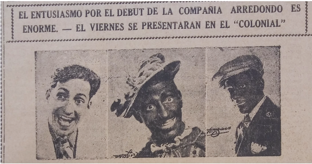 Imagen 5 Anuncio del debut de la Compañía de Zarzuelas y Revistas Cubanas Arredondo, en el que aparece Enrique Arredondo caracterizado de “Negrito”. Diario de Yucatán, 14 de octubre de 1943, p. 7. Fondo Reservado de la Biblioteca Yucatanense.
