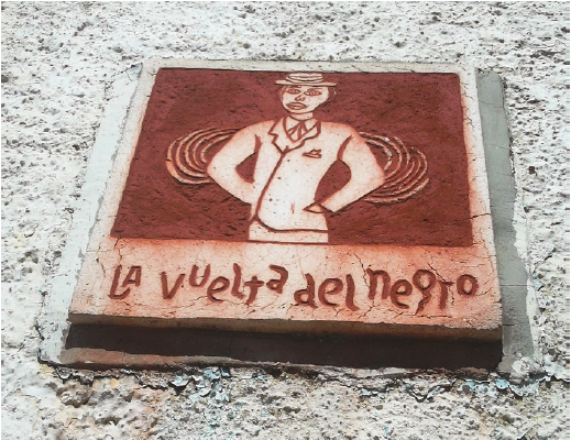 Imagen 2 Placa “La vuelta del negro”, localizada en la esquina de las calles 48 y 55, Mérida, 2018.