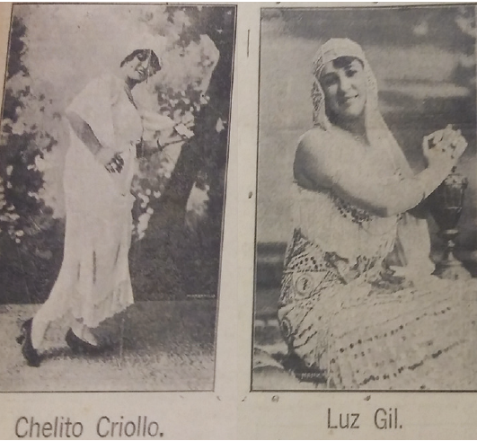 Imagen 6 Chelito Criollo y Luz Gil fueron dos actrices que formaron parte de la compañía cubana Espígul, la que se presentó en Mérida a finales de 1918. Fueron reconocidas por la prensa yucateca por sus papeles de mulata y por bailar rumbas en el escenario. Revista de Yucatán, 1 de diciembre de 1918, p. 8. Fondo Reservado de la Biblioteca Yucatanense.