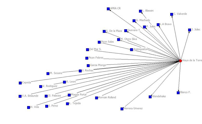 Cuadro 1 Red egocéntrica de Haya de la Torre (1924-1930)