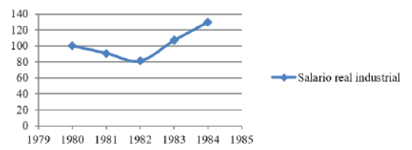 Figura 3 Salario real industrial entre 1979-1985 (1980=100) en tasas de variación