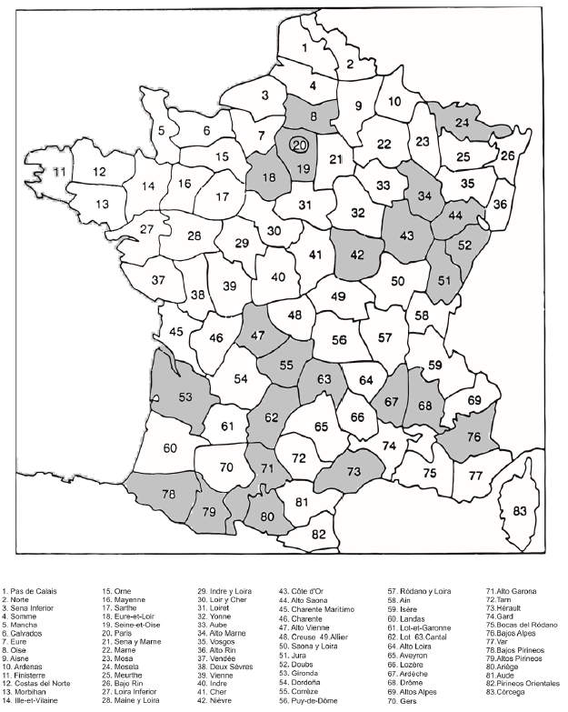 Figura 3 Departamentos de procedencia de los expulsados franceses de México en 1838-1839.