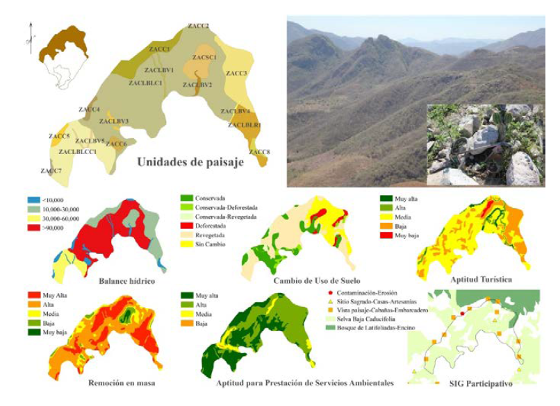 También, representa la zona con mayor susceptibilidad ante peligros geológicos, ya que en más del 80% de su área se identificaron valores altos de remoción en masa y erosión. Por otra parte, es la zona con menor susceptibilidad ante peligros hidrometeorológicos, puesto que más del 95% presenta valores nulos ante inundaciones. Entre los años de 1974 y 2016 el cambio de uso del suelo en esta zona se manifestó, de forma general, en la disminución de zonas de pastizal, beneficiando la recuperación de las coberturas naturales representadas por la selva baja caducifolia y el bosque natural de latifoliadas-encino.