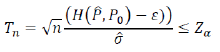 El test de equivalencia presentado se basa en el comportamiento asintótico del test estadístico Tn. Es decir, para un valor de ε, y para un nivel de significación α, la distribución asintótica, para tamaños de muestra grandes, es una distribución normal estándar.