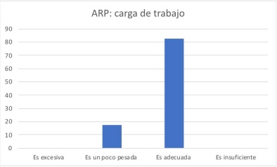 Para el caso de la carga de trabajo, a la mayoría de los alumnos les pareció “adecuada” (83% para Argumentación y 62% para Comunicación Escrita), aunque sí hubo un pequeño porcentaje al que le pareció “un poco pesada” (17% para Argumentación y 38% para Comunicación Escrita). A nadie le pareció que la carga de trabajo fuera “excesiva”.