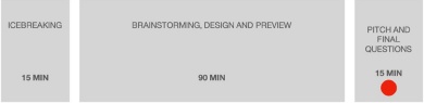 Finally, as part of the activity, students were presented with a technological problem that had to be solved through an understanding of people’s needs and motivations, beginning with their own points of view. This final approach allowed students to frame their own creativity processes in which their group engaged in discussion to select the most adequate idea to develop during the meeting. As a team, students elaborated on their project through use of: