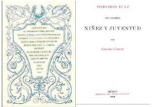 Porfirio Díaz:sus padres, niñez y juventud. Genaro García Colofón. Imprenta del Museo Nacional, 1906