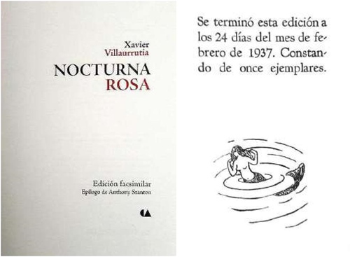 Xavier Villaurrutia Nocturna Rosa Colofón 1937 Once ejemplares.