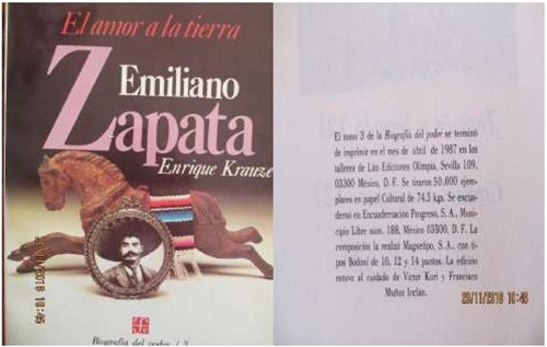 El amor a la tierra. Emiliano Zapata. Enrique Krauze. 1987 Colofón 50,000 ejemplares.