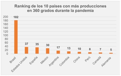 Gráfico 1 Ranking de los países con más producciones en 360 grados durante la pandemia