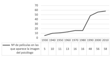 Por otro lado, vemos cómo en la década de los 90 y los 2000 hay un auge en la imagen del psicólogo en el cine. Ello se puede deber fundamentalmente al crecimiento de películas policiacas y criminales, donde el psicólogo tiene un papel protagonista, como se puede ver sobre todo en la década de los 90, donde sobresale la psicología forense. También percibimos cómo en la década más actual hay psicólogos en todas las películas, lo cual nos ayuda a pensar en lo costoso que ha sido el proceso de nuestra imagen social a través del cine.